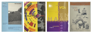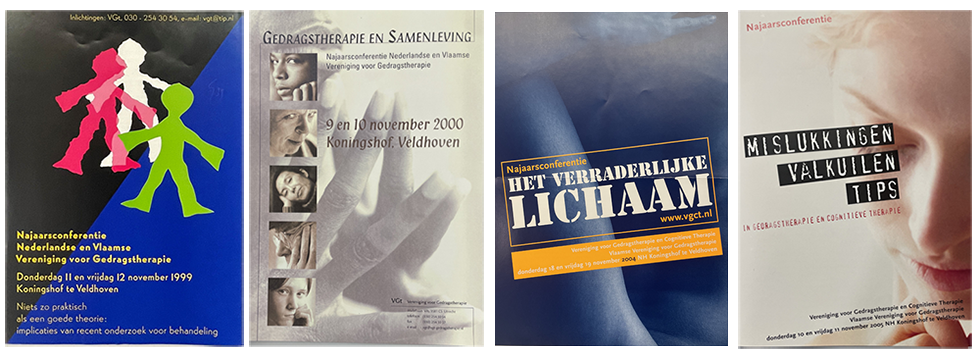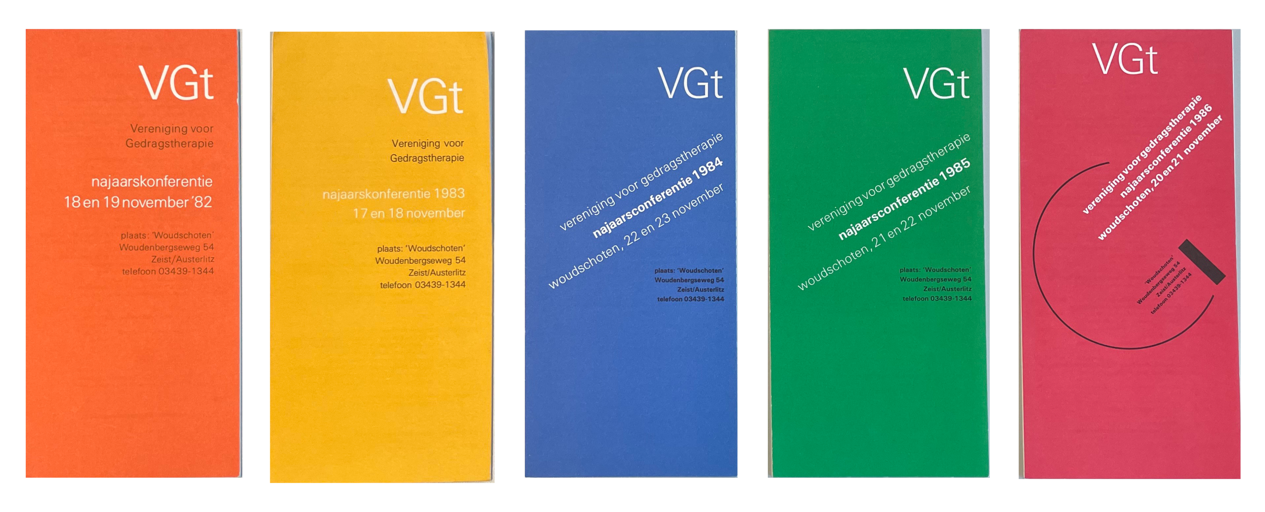 Een regenboog aan covers in de jaren 80 van de folders voor de eerste Najaarscongressen.
