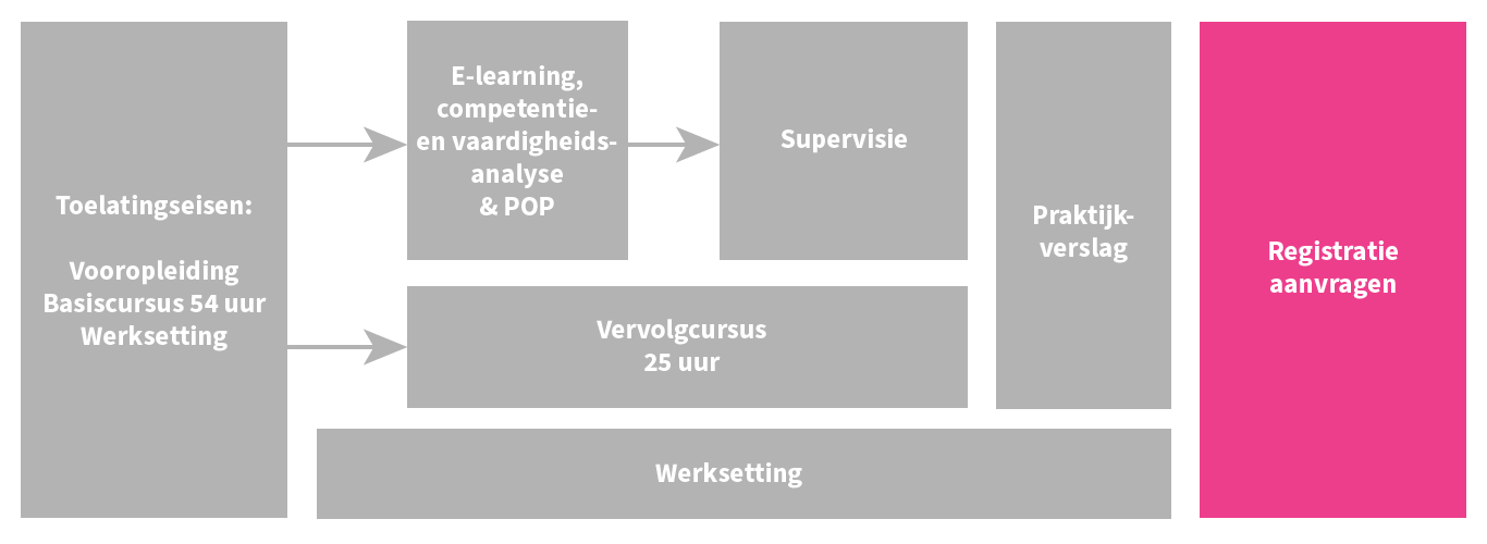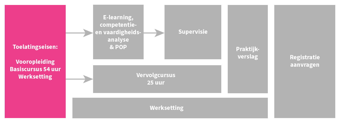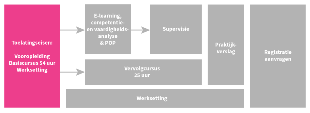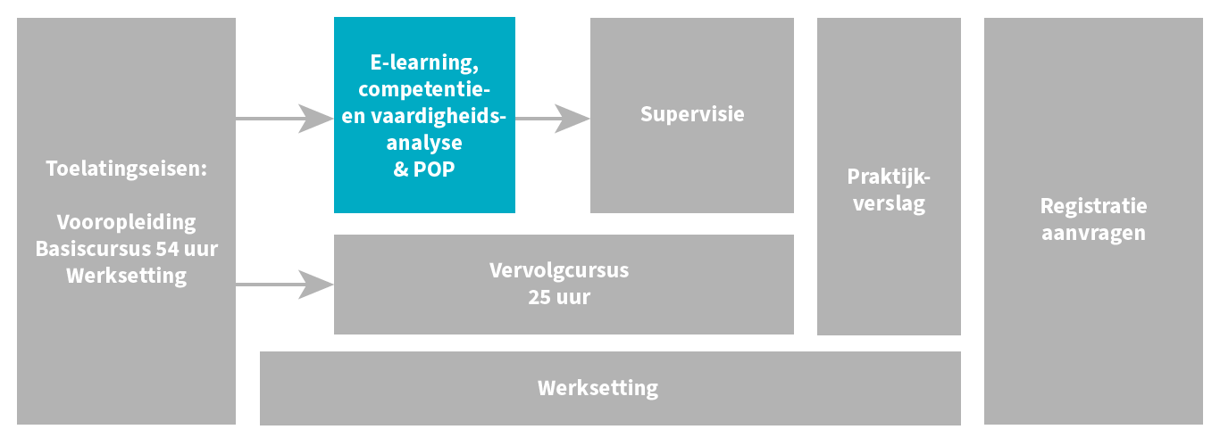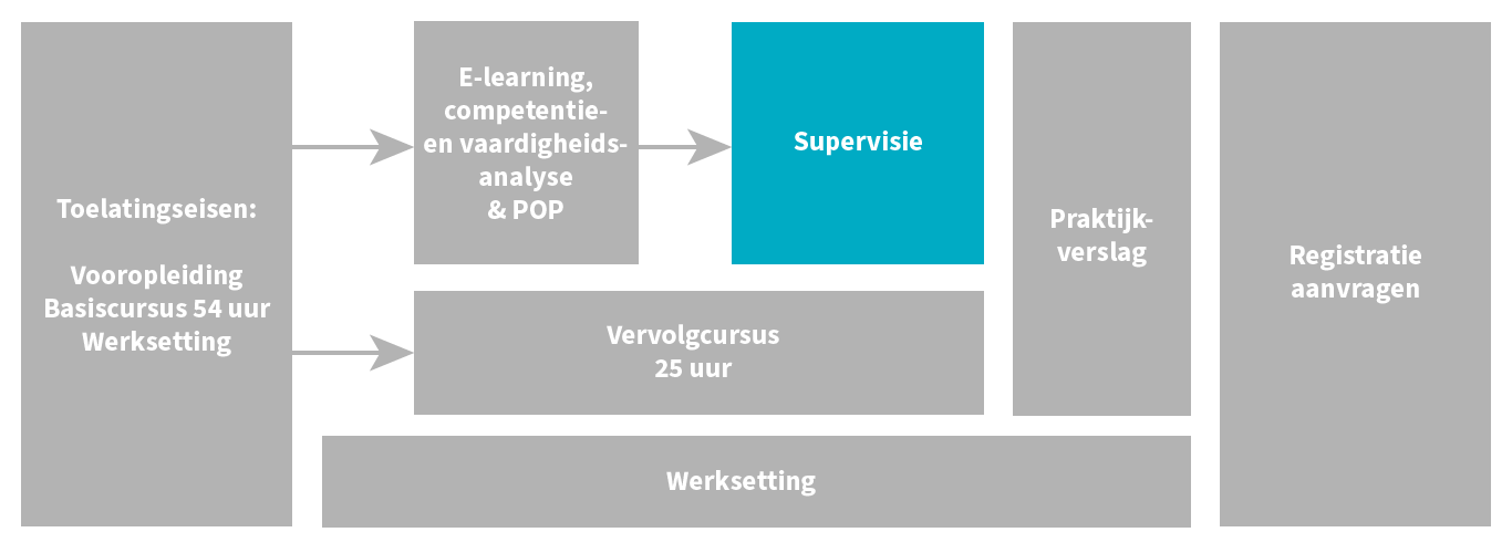 Voldoe je aan de toelatingseisen? Dan kun je aan de slag. Let er op dat je pas na het afronden van de e-learning kunt starten met supervisie.